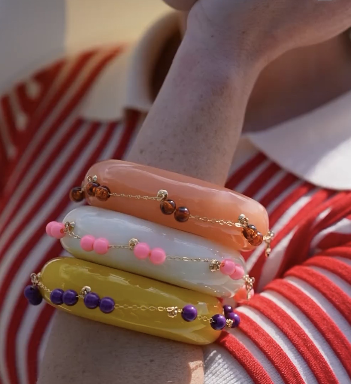 デザインから安全な素材選び、仕上げまで一貫したMade in Parisを実現するため、マレ地区の自身の工房で製作。細部までこだわりロマンチックでカラフルな幸せに溢れたアクセサリーに仕上がっています。